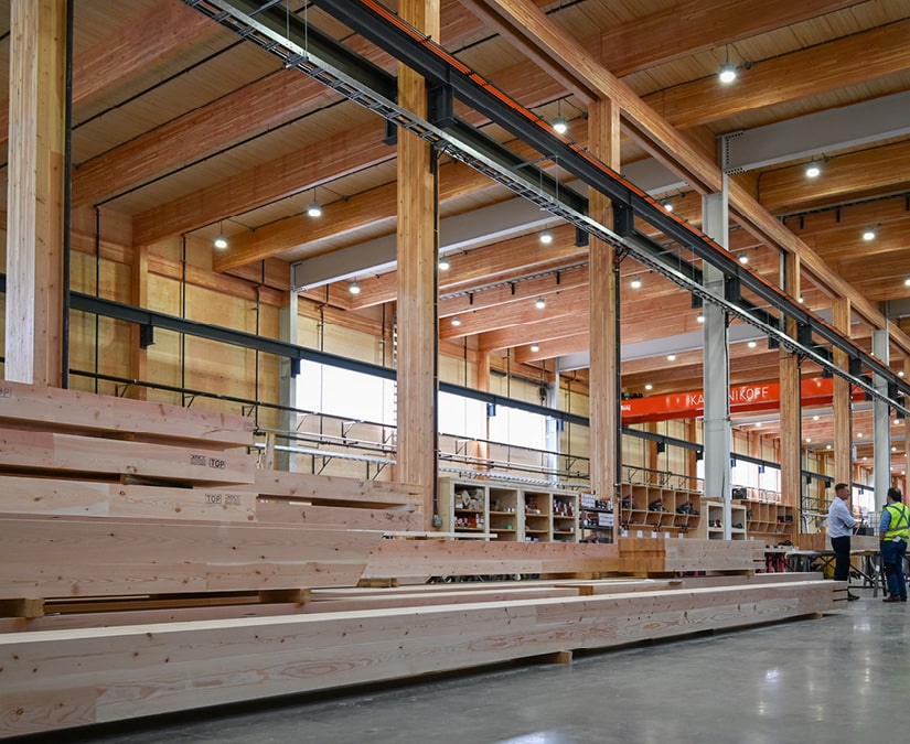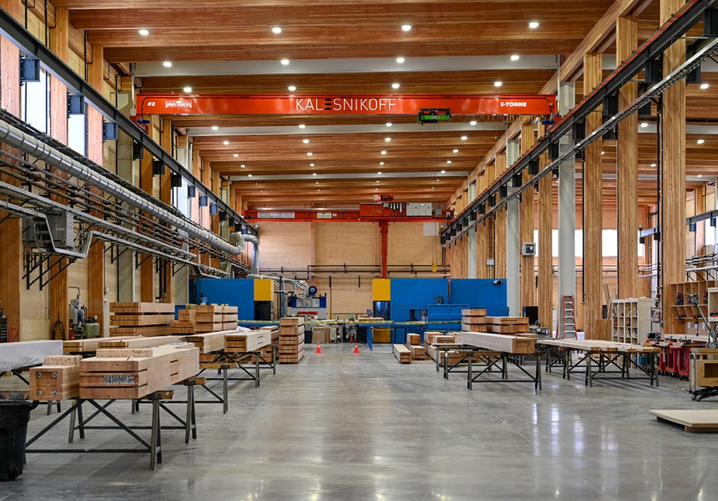 Kalesnikoff’s new 100,000 sq ft modular and prefabrication facility in Castlegar, BC, expands Canada’s capacity for engineered wood construction. The plant integrates mass timber production, light-frame fabrication, and modular assembly under one roof to deliver installation-ready wall, floor, and roof systems for housing, institutional, and commercial projects.