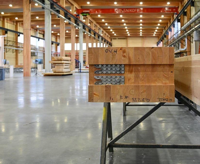 Inside the plant, prefabrication workflows are optimized around crane-serviced bays where wall, floor, and volumetric modules are assembled with pre-machined connectors and embedded lifting anchors. Hardware and fasteners are installed in-plant to ensure alignment accuracy and reduce on-site adjustments, while rigging points are positioned for direct crane placement. The resulting setup minimizes field labour, improves installation precision, and demonstrates how structural hardware integration can enhance modular timber construction.